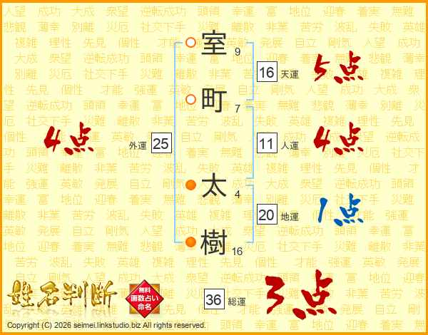 室町太樹さんの総運は36画の3点!