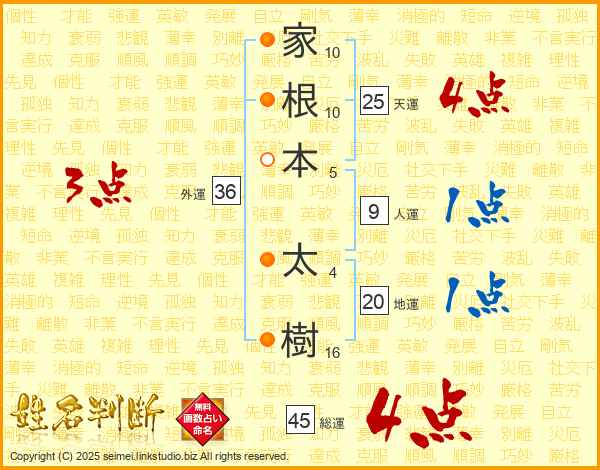 家根本太樹さんの総運は45画の4点!