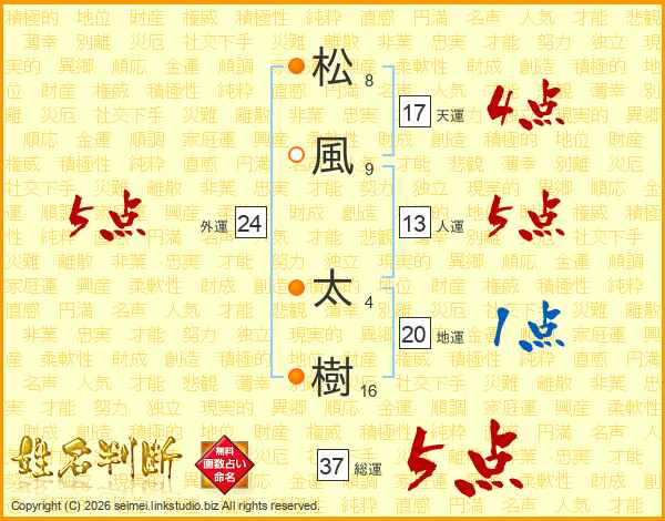 松風太樹さんの総運は37画の5点!