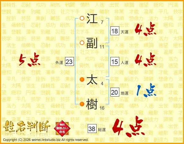 江副太樹さんの総運は38画の4点!