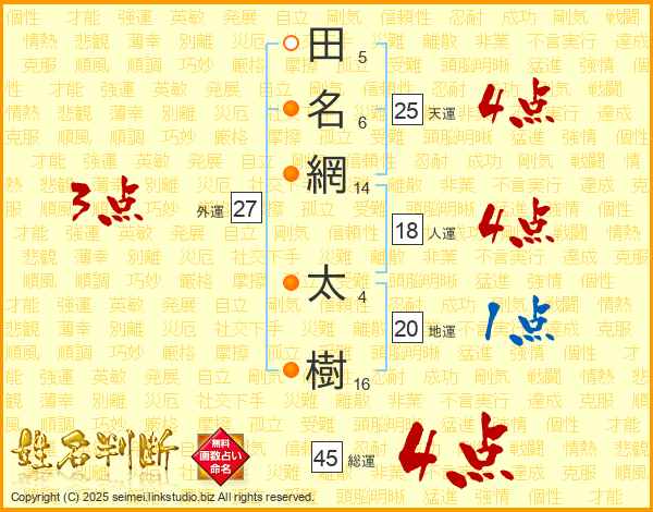 田名網太樹さんの天運は25画の4点!