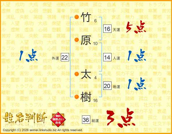 竹原太樹さんの総運は36画の3点!