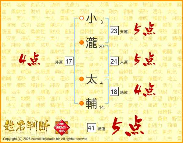 小瀧太輔さんの総運は41画の5点!