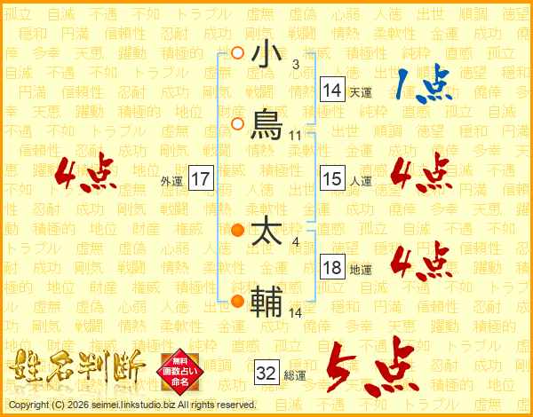 小鳥太輔さんの総運は32画の5点!