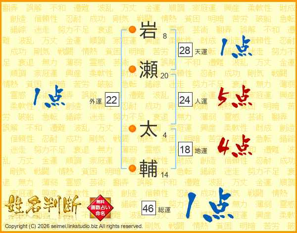 岩瀬太輔さんの総運は46画の1点!