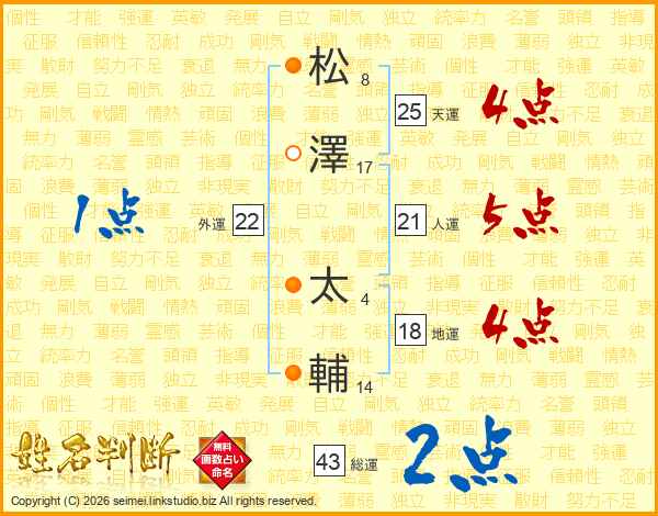 松(8画)澤(17画) 太(4画)輔(14画)