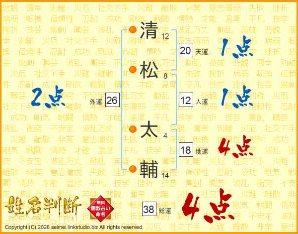 清松太輔さんの総運は38画の4点!