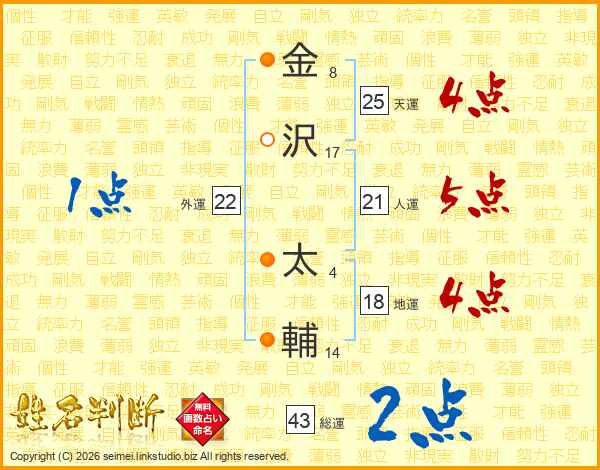 金(8画)沢(17画) 太(4画)輔(14画)