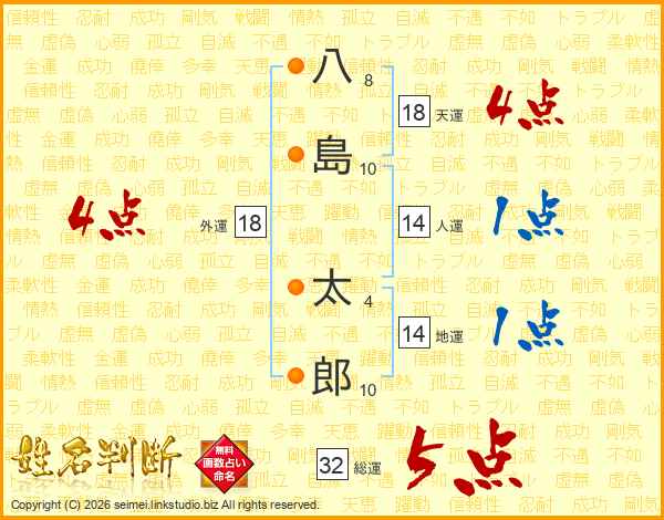 八島太郎さんの総運は32画の5点!