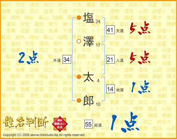 塩(24画)澤(17画) 太(4画)郎(10画)