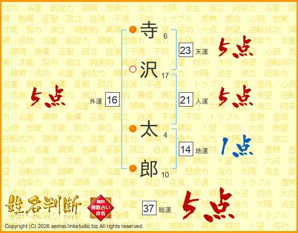 寺(6画)沢(17画) 太(4画)郎(10画)