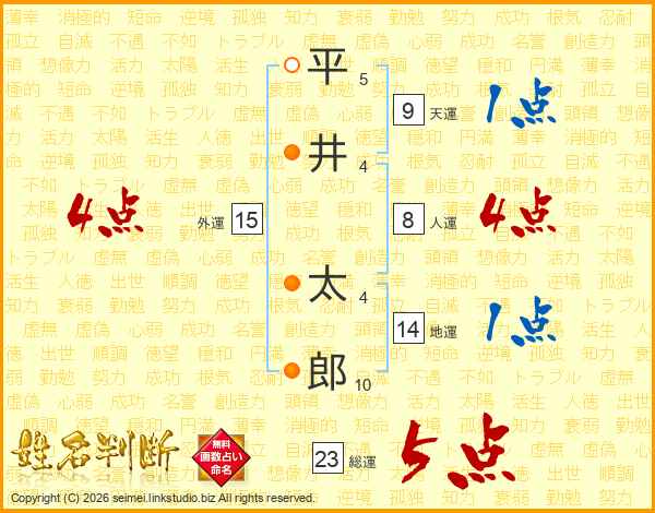 平井太郎さんの総運は23画の5点!