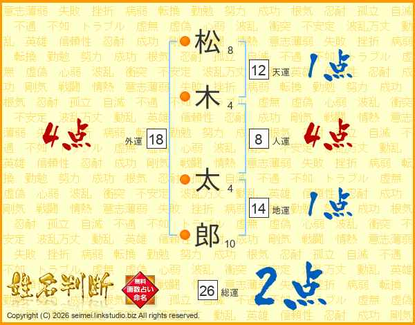 松木太郎さんの総運は26画の2点!