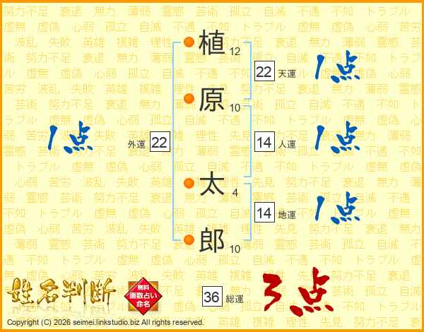 植原太郎さんの総運は36画の3点!