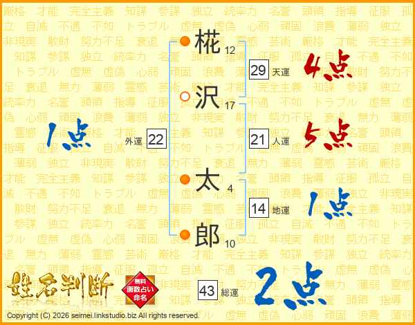椛沢太郎さんの総運は43画の2点!
