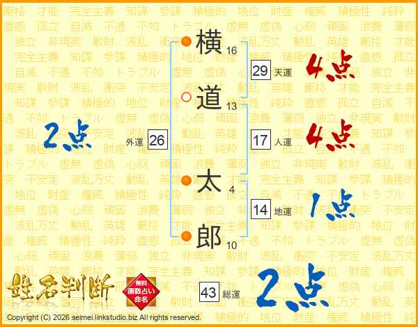 横道太郎さんの総運は43画の2点!