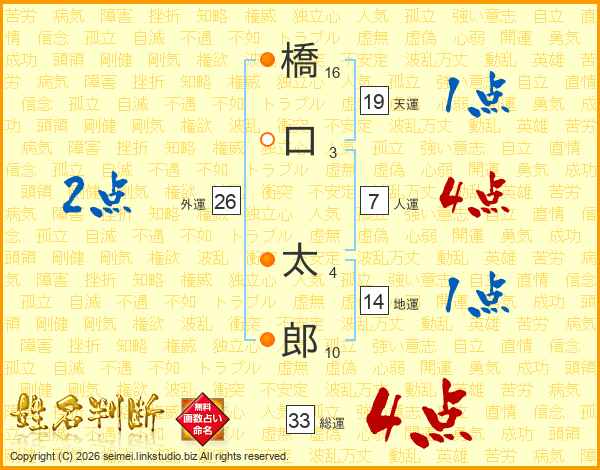 橋口太郎さんの総運は33画の4点!
