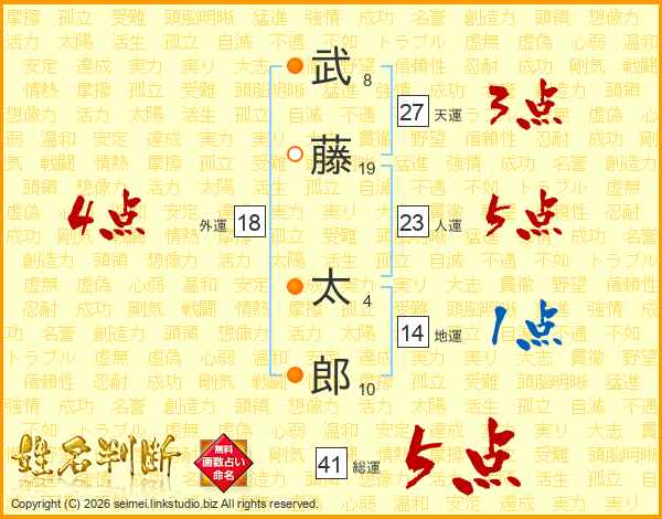 武藤太郎さんの総運は41画の5点!