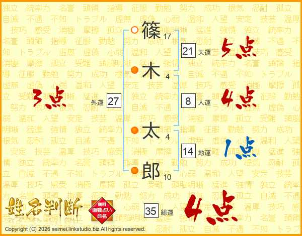 篠(17画)木(4画) 太(4画)郎(10画)