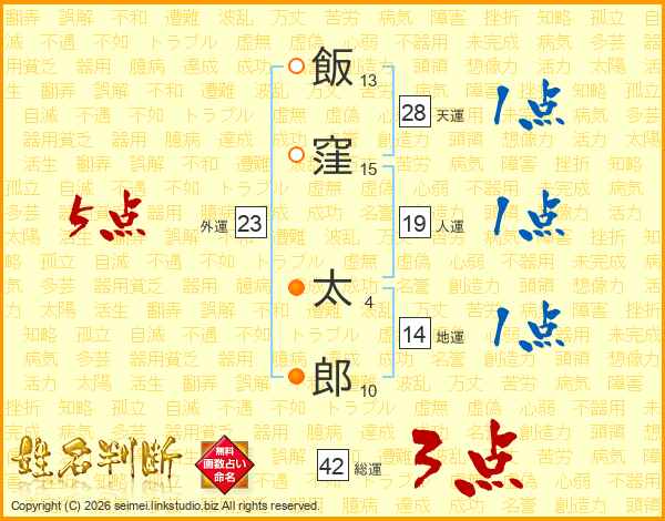 飯窪太郎さんの総運は42画の3点!