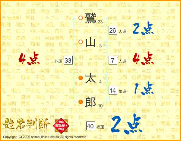 鷲山太郎さんの総運は40画の2点!