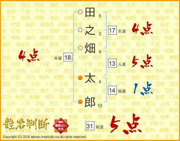 田之畑太郎さんの総運は31画の5点!
