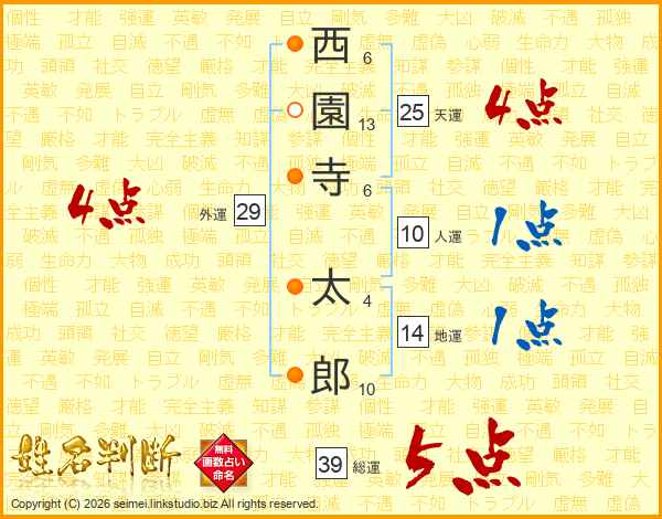 西(6画)園(13画)寺(6画) 太(4画)郎(10画)