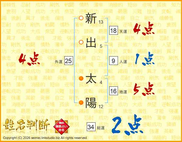 新出太陽さんの天運は18画の4点!