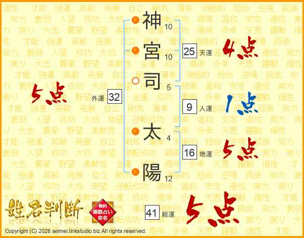 神宮司太陽さんの外運は32画の5点!