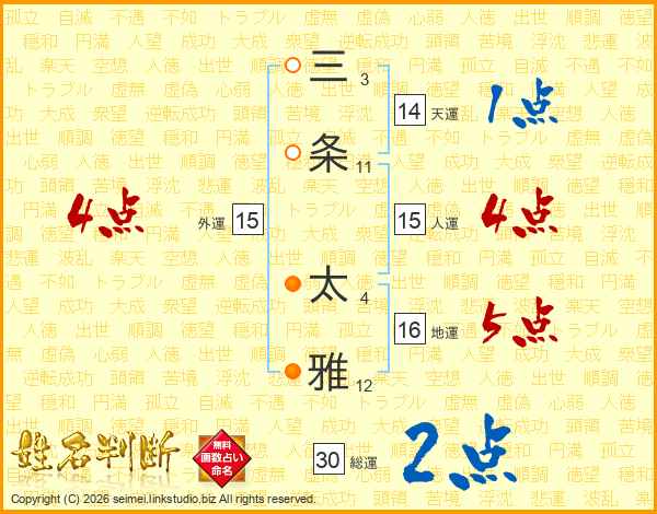 三条太雅さんの総運は30画の2点!