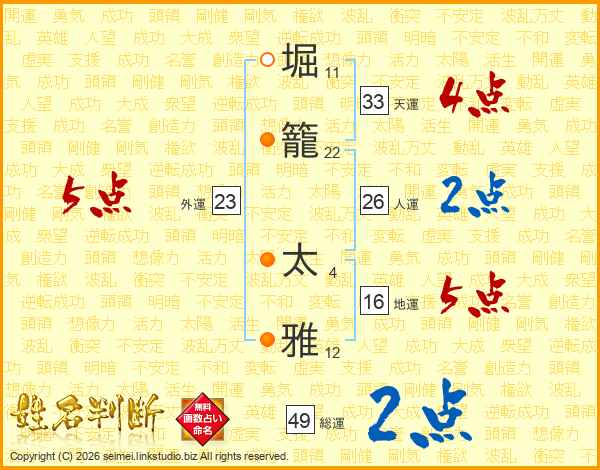 堀籠太雅さんの天運は33画の4点!