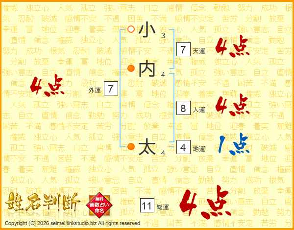 小内太さんの総運は11画の4点!