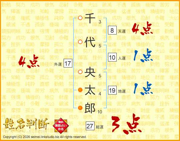 千代央太郎さんの総運は27画の3点!