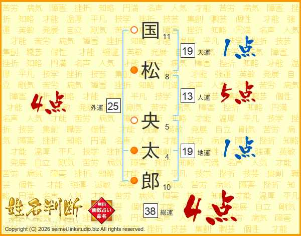 国(11画)松(8画) 央(5画)太(4画)郎(10画)