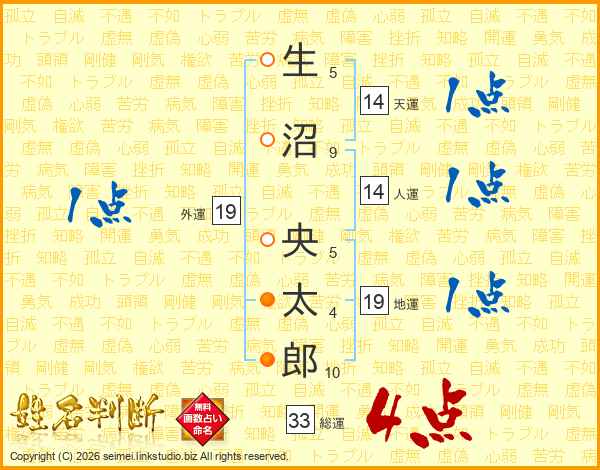 生沼央太郎さんの天運は14画の1点!
