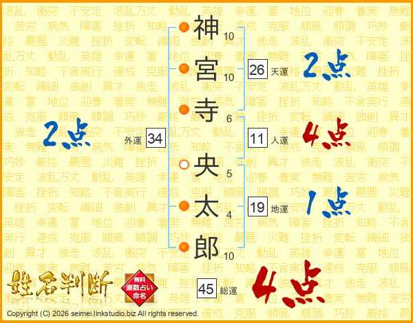 神宮寺央太郎さんの総運は45画の4点!