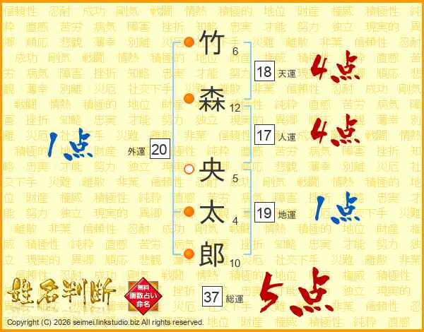 竹(6画)森(12画) 央(5画)太(4画)郎(10画)