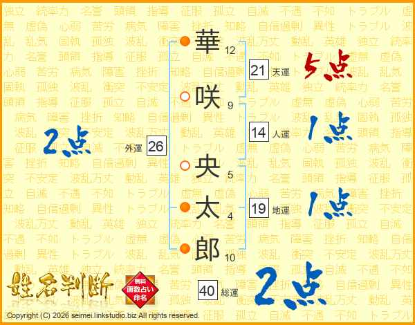 華咲央太郎さんの総運は40画の2点!