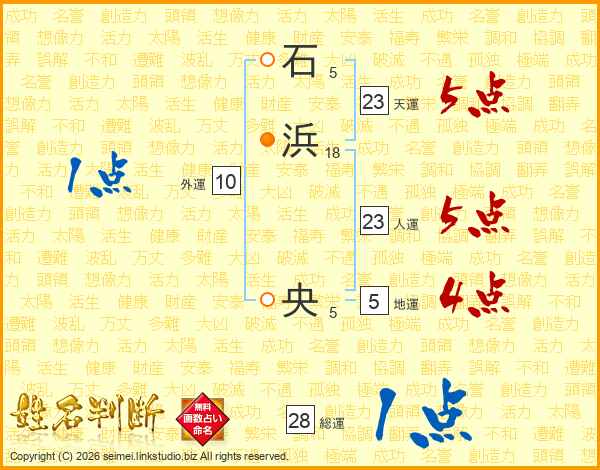 石浜央さんの総運は28画の1点!