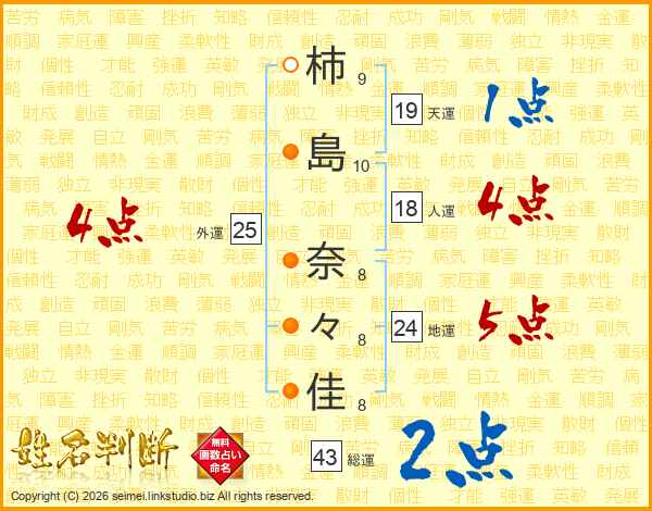 柿島奈々佳さんの総運は43画の2点!