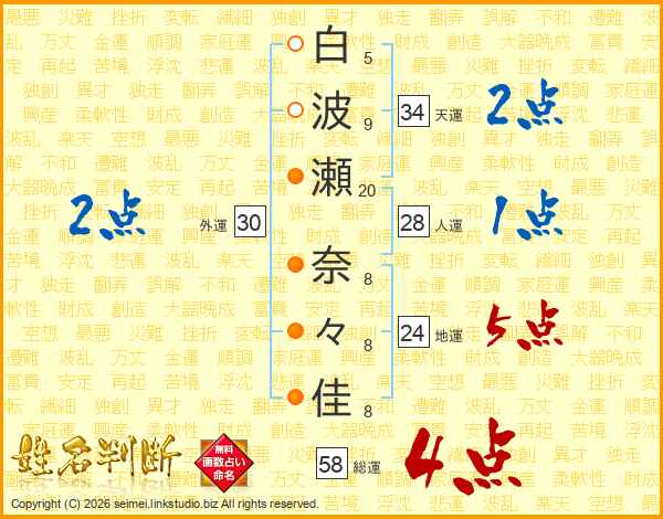 白波瀬奈々佳さんの総運は58画の4点!