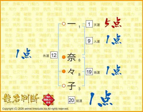 一奈々子さんの総運は20画の1点!