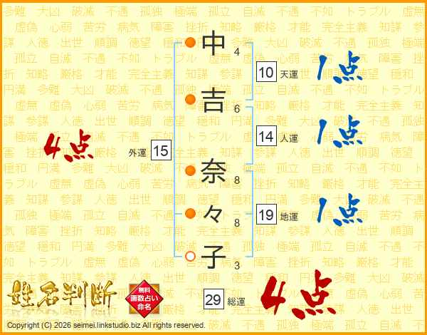 中吉奈々子さんの総運は29画の4点!