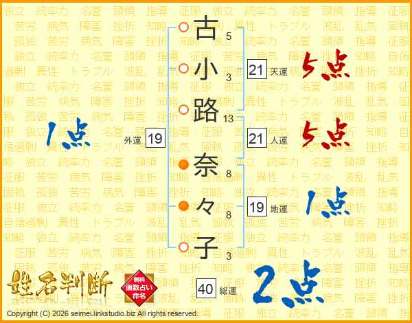 古(5画)小(3画)路(13画) 奈(8画)々(8画)子(3画)