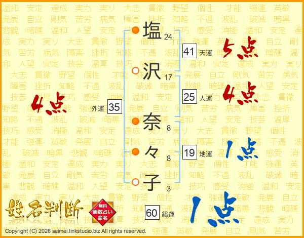 塩沢奈々子さんの外運は35画の4点!