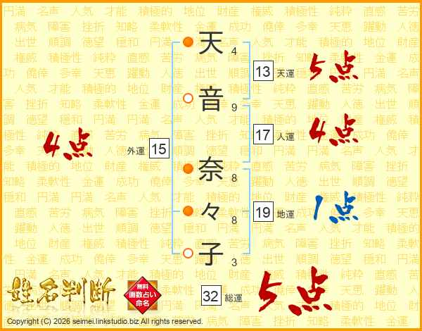 天音奈々子さんの総運は32画の5点!