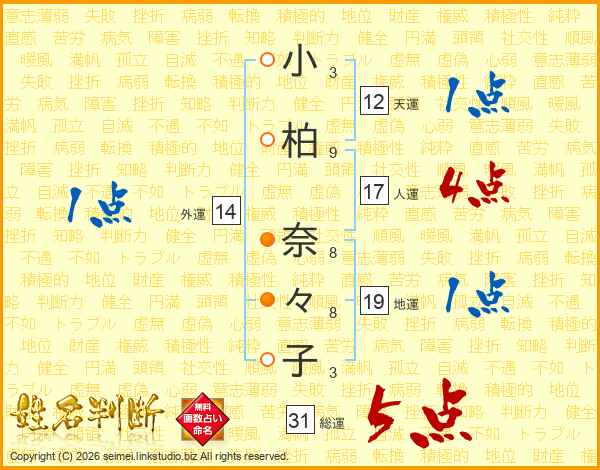 小柏奈々子さんの総運は31画の5点!
