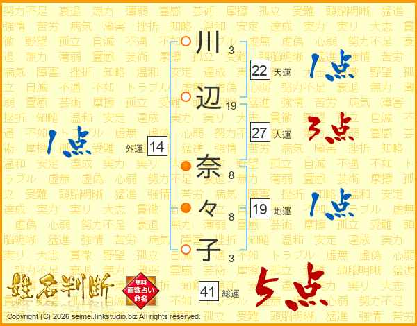 川辺奈々子さんの総運は41画の5点!