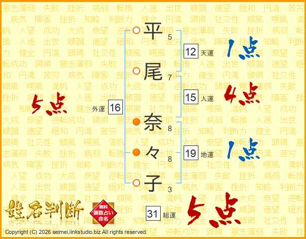 平尾奈々子さんの総運は31画の5点!