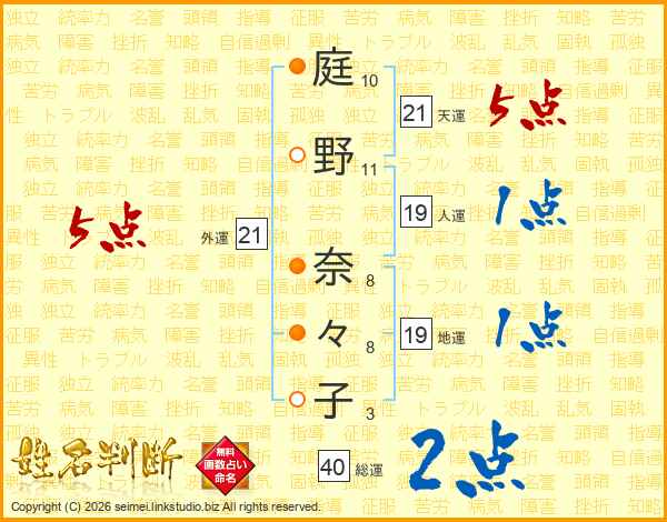庭野奈々子さんの天運は21画の5点!